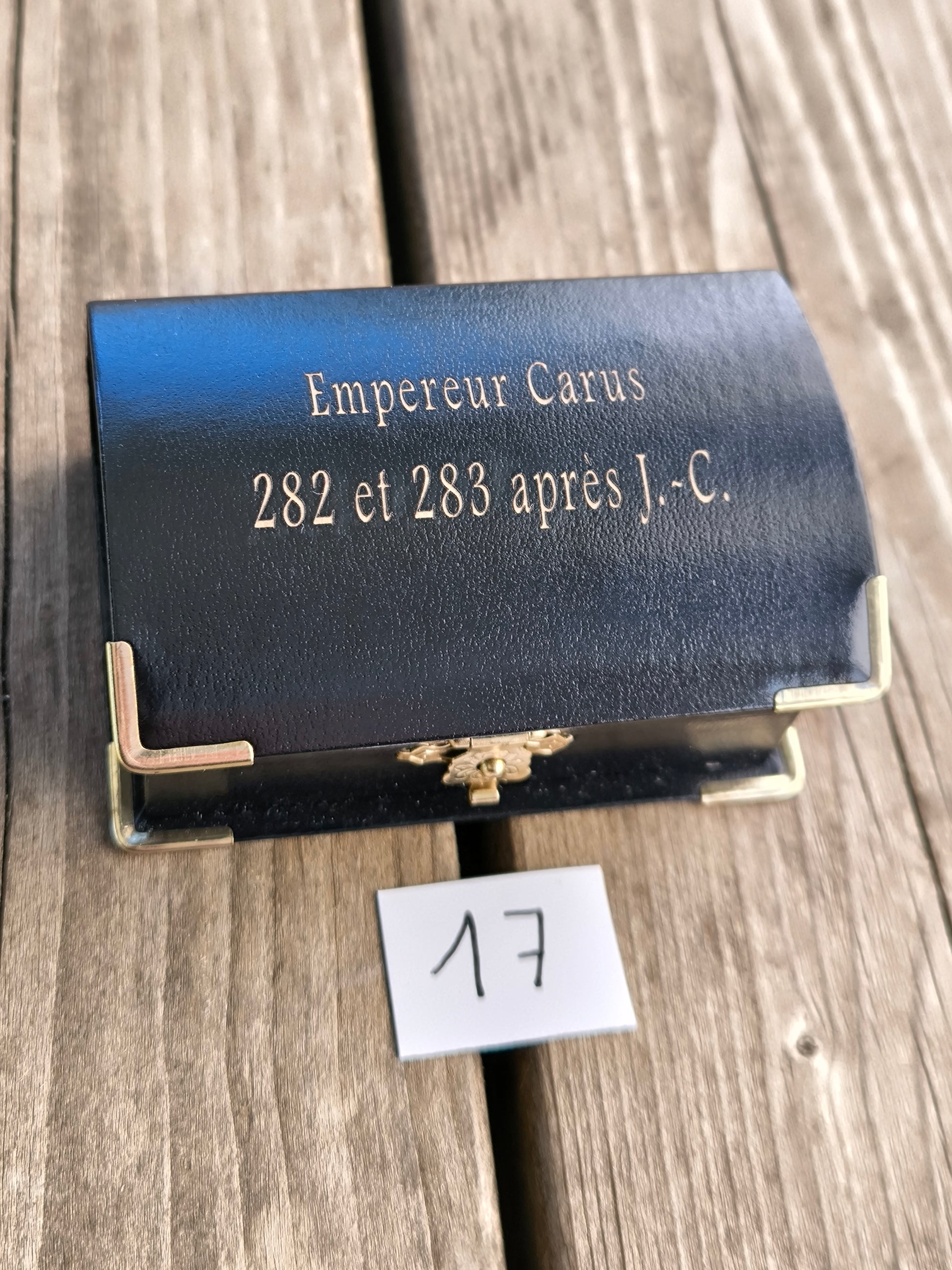 - Légende : D N CARVS P F AVG (Dominus Noster Carus Pius Felix Augustus - Notre Seigneur Carus, Pieux, Heureux, Auguste).